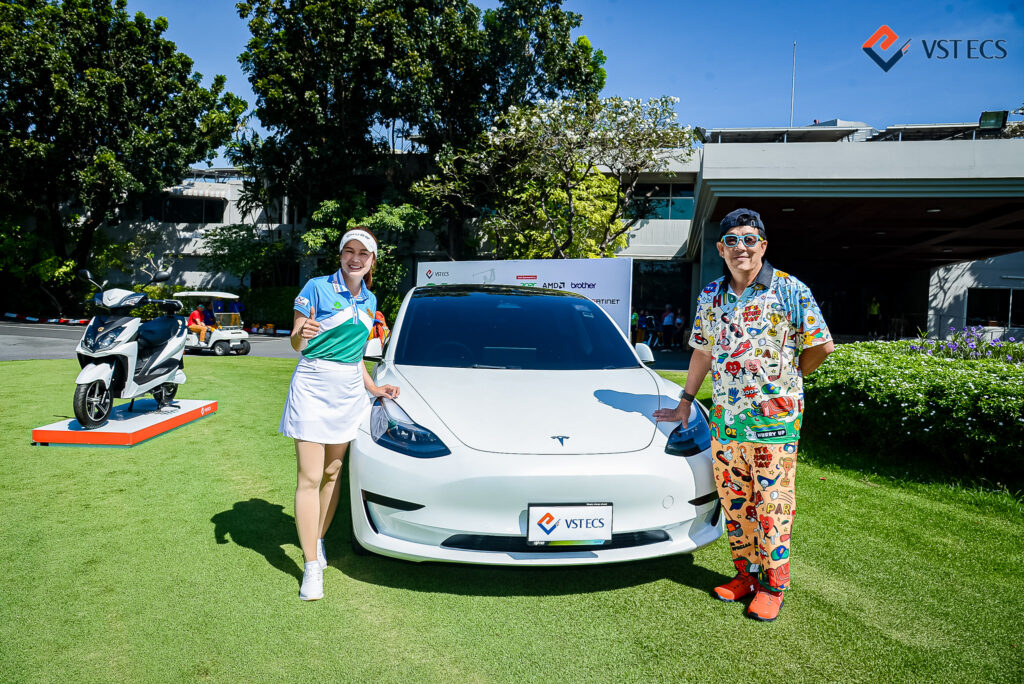 สำหรับภาพรวมของงานแข่งกอล์ฟ VST ECS Golf 2023 ปีนี้ นอกจากของขวัญ ร่มกอล์ฟลายสวย ๆ ลูกกอล์ฟ และคูปองอาหารภายในสุ่ม สำหรับผู้ลงทะเบียนทุกท่าน ทาง VST ECS ได้สร้างเซอร์ไพรส์ด้วยรางวัลใหญ่ที่สุดที่เคยจัดมาในรอบหลายปี นั่นก็คือ รถยนต์ไฟฟ้า EV ยี่ห้อ Tesla จำนวน 1 คัน สำหรับนักกอล์ฟที่สามารถทำ Hole in One หลุม 7 พาร์ 3 ระยะ 200 หลาได้ ถ้าหากมีผู้ทำได้มากกว่า 1 ท่าน รางวัลจะถูกแบ่งสัดส่วนเท่า ๆ กันในรูปแบบ Pocket Money (หลุมนี้ ก๊วนติดมากที่สุด) สำหรัมพาร์ 3 หลุมอื่น ๆ ยังมีรางวัลจากผลิตภัณฑ์ไอทีให้ได้ร่วมลุ้นกันด้วยเช่นกัน