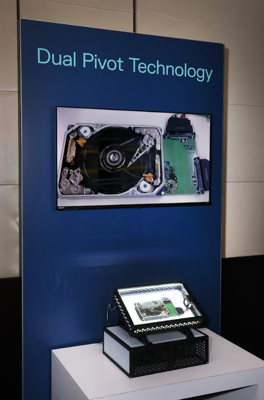- เทคโนโลยี Dual Pivot เพิ่มชุดแอคชูเอเตอร์ที่สองที่ทำงานอิสระบนจุดหมุนแยก และจะส่งมอบประสิทธิภาพ Sequential IO ที่เพิ่มขึ้นสูงสุดถึง 2 เท่าภายในฮาร์ดดิสก์ขนาด 3.5 นิ้ว สิ่งนี้แตกต่างจากการออกแบบแอคชูเอเตอร์คู่แบบก่อนหน้าที่ต้องเสียสละความจุและต้องการการเปลี่ยนแปลงซอฟต์แวร์ของลูกค้าอย่างกว้างขวาง Dual Pivot ช่วยให้สามารถลดระยะห่างระหว่างดิสก์ ทำให้สามารถใส่จานต่อไดรฟ์ได้มากขึ้นและมีความจุรวมสูงขึ้น