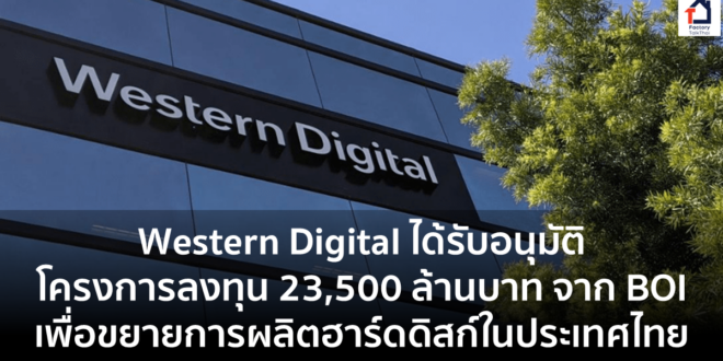 สำนักงานคณะกรรมการส่งเสริมการลงทุน (บีโอไอ) ของไทย เปิดเผยเมื่อวันจันทร์ว่า ประเทศไทยได้อนุมัติโครงการลงทุนมูลค่า 23,500 ล้านบาทของเวสเทิร์น ดิจิตอล การลงทุนดังกล่าวจะช่วยกระตุ้นเศรษฐกิจของไทยโดยเพิ่มการส่งออกมูลค่า 200,000 ล้านบาทต่อปี และสร้างงานเพิ่มอีก 10,000 ตำแหน่ง โรงงานของเวสเทิร์น ดิจิตอล ในประเทศไทยมีพนักงาน 28,000 คน ซึ่งผลิตฮาร์ดดิสก์ประมาณ 80% ของโลก และการอนุมัติโครงการลงทุนมูลค่า 23,500 ล้านบาทของเวสเทิร์น ดิจิตอล ล่าสุด เพื่อขยายการผลิตฮาร์ดดิสก์ในประเทศ เนื่องจากความต้องการเทคโนโลยีคลาวด์และศูนย์ข้อมูลมีมากขึ้น ประเทศไทยได้อนุมัติการลงทุนมูลค่า 82,600 ล้านดอลลาร์สหรัฐฯ ในอุตสาหกรรมฮาร์ดดิสก์ในช่วง 10 ปีที่ผ่านมา คู่แข่งอย่างซีเกทได้ขยายการลงทุนแล้ว ด้วยการลงทุนมูลค่า 16,000 ล้านบาท และคาดการณ์ว่ายอดการยื่นขอลงทุนโดยรวมจะสูงถึง 800,000 ล้านบาทในปี 2567 ที่มา : https://www.reuters.com/technology/thailand-approves-western-digitals-693-mln-investment-project-2024-08-26/
